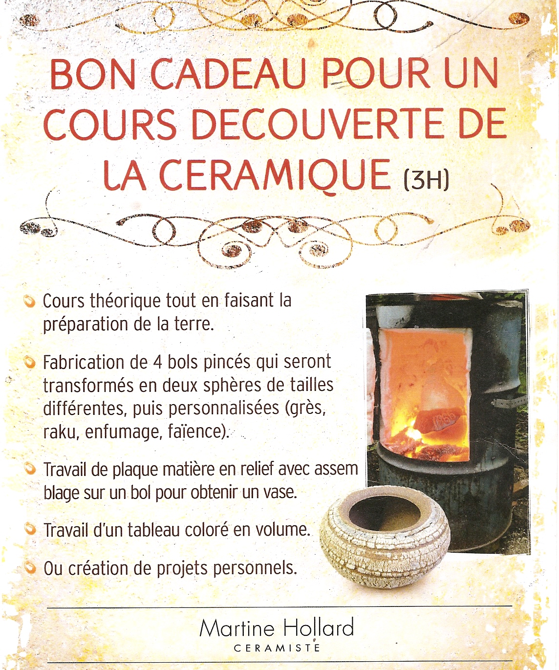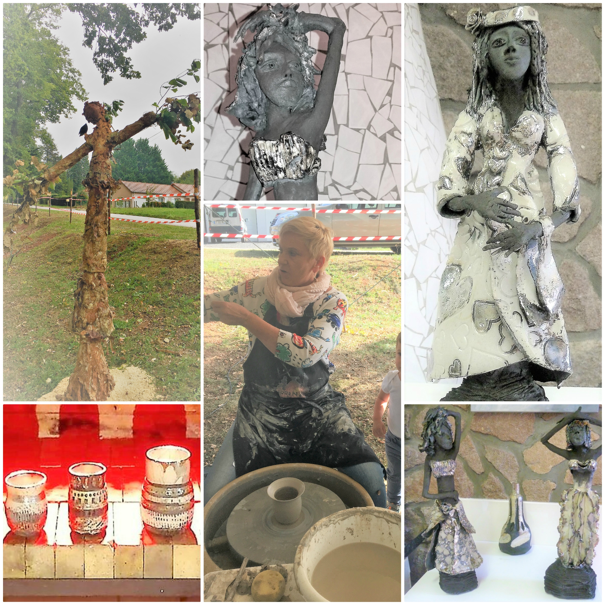 démonstrations de sculpture, jarres à la corde, sculpture suspendue, porcelaine, tournage... émaillage et cuisson raku.