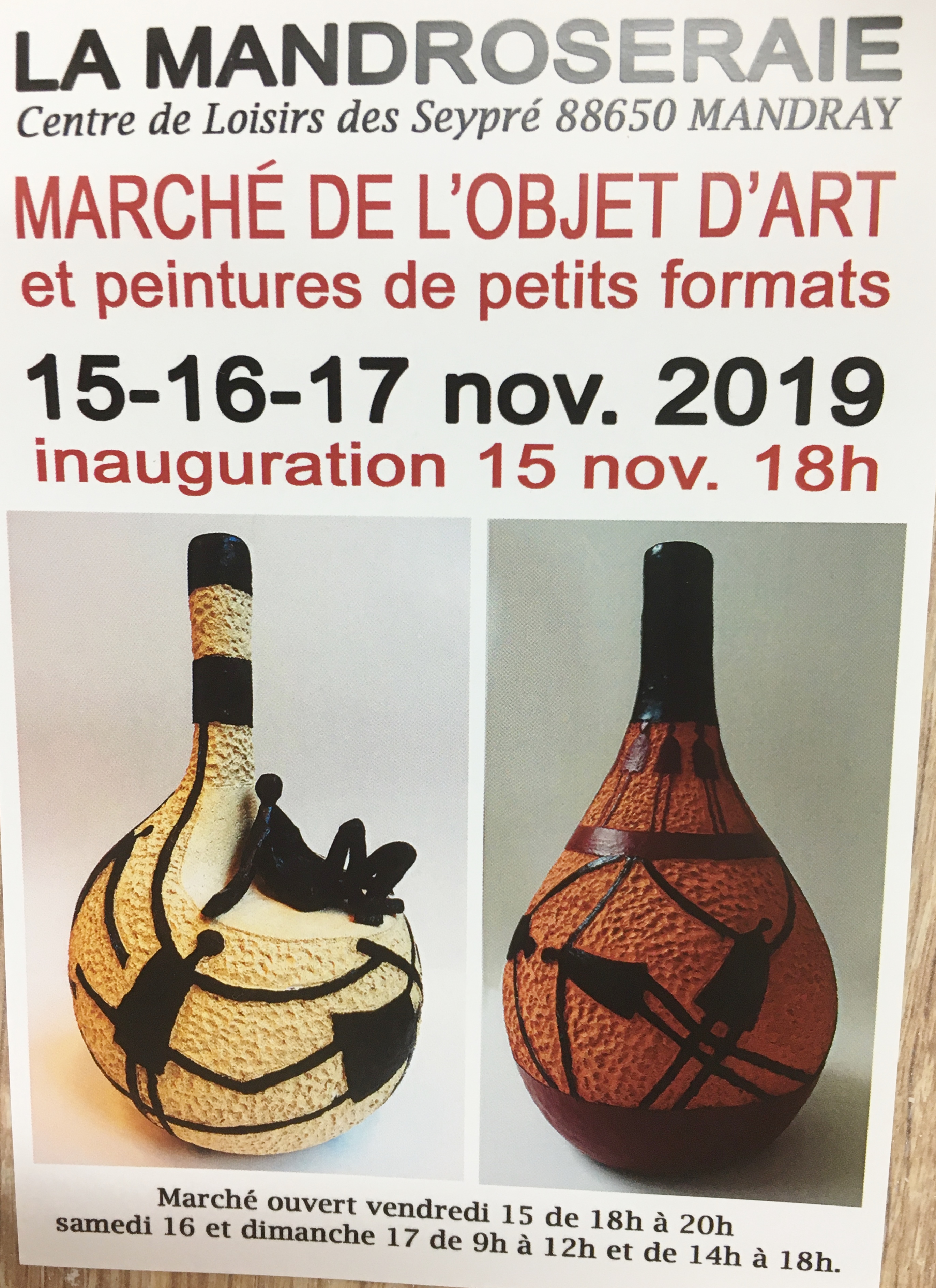 Tous les deux ans, la Mandroseraie organise à Mandray un marché d'automne de l'objet d'art. J'y ai exposé quelques unes de mes dernières pièces.
