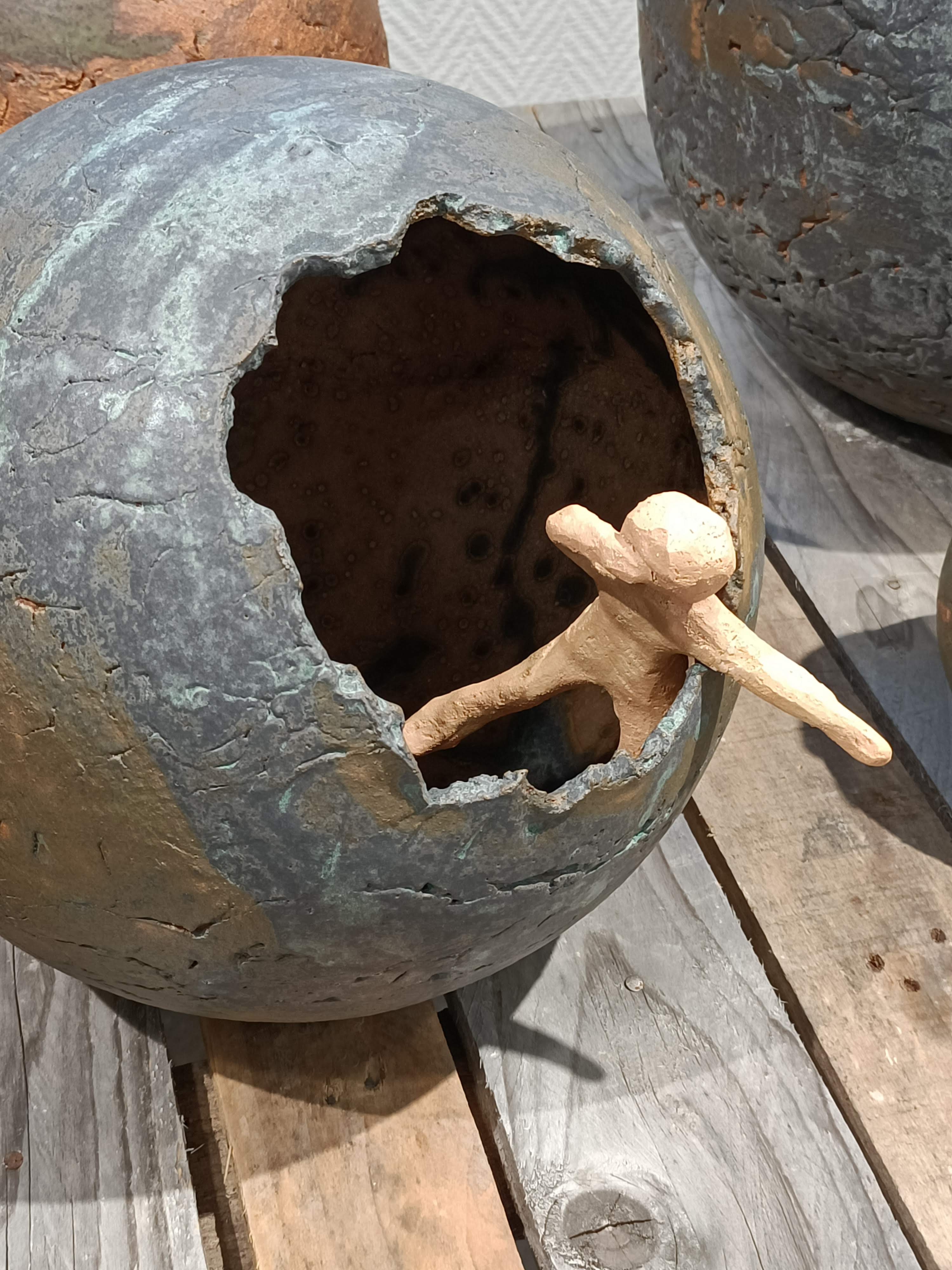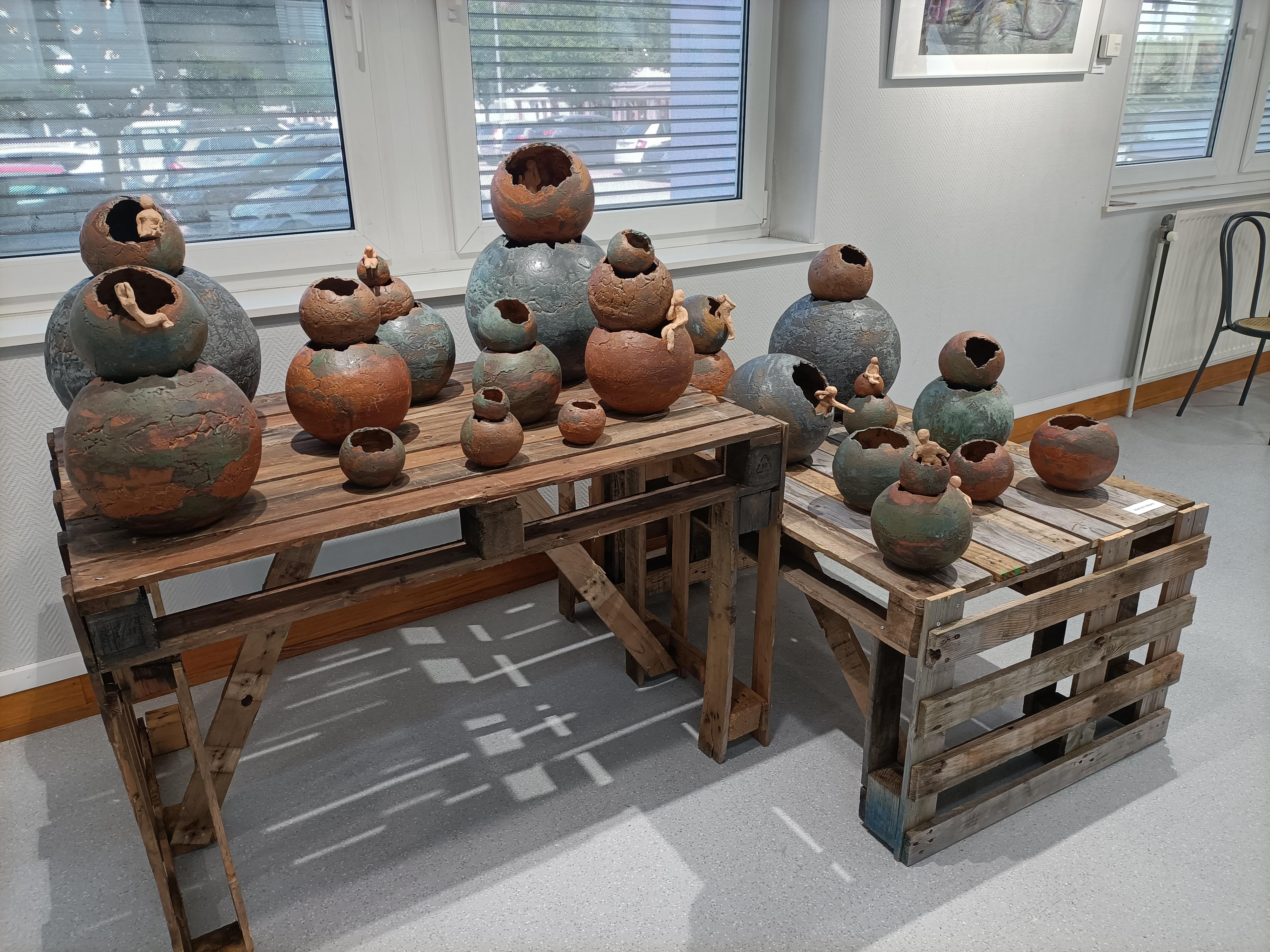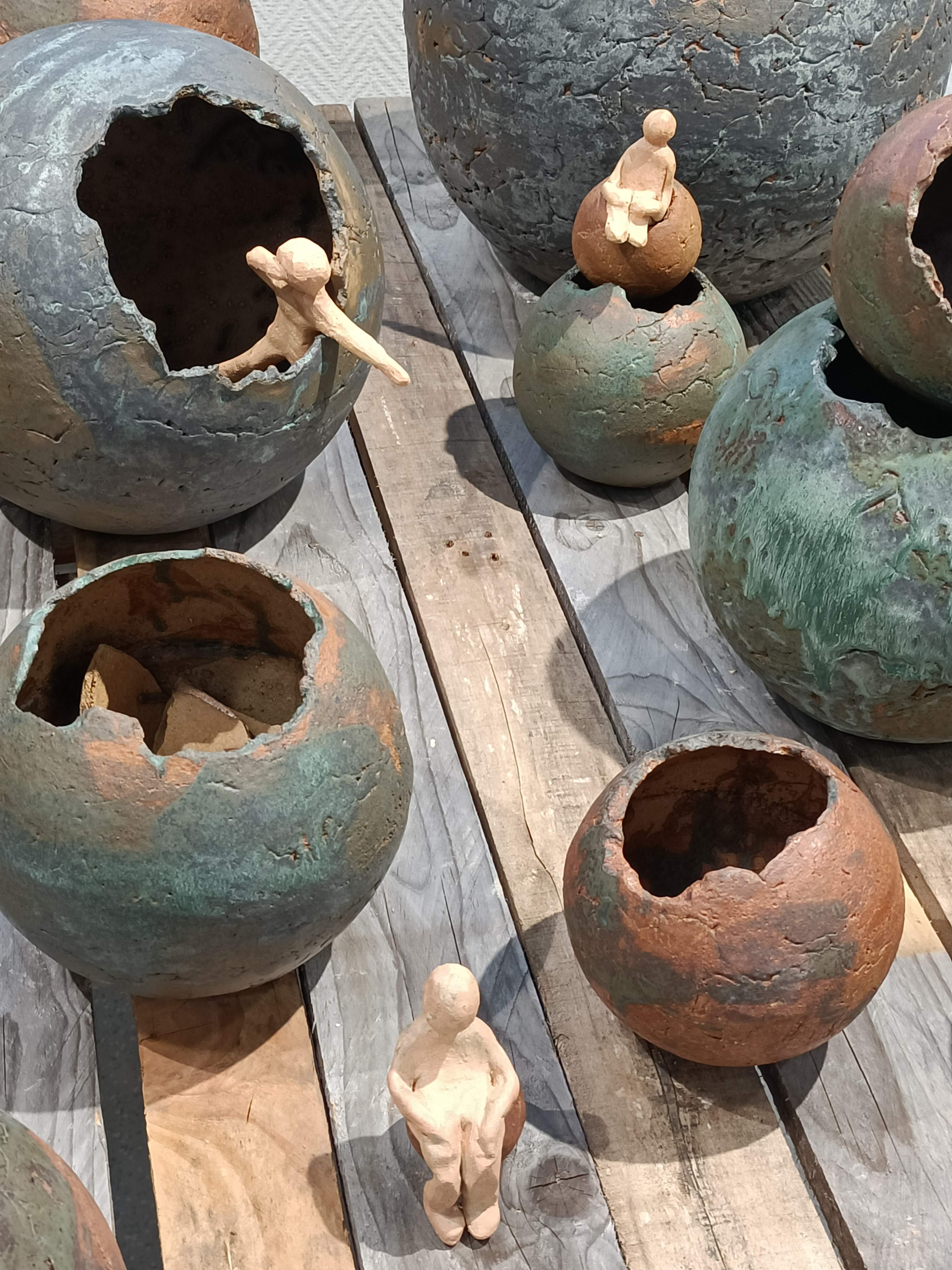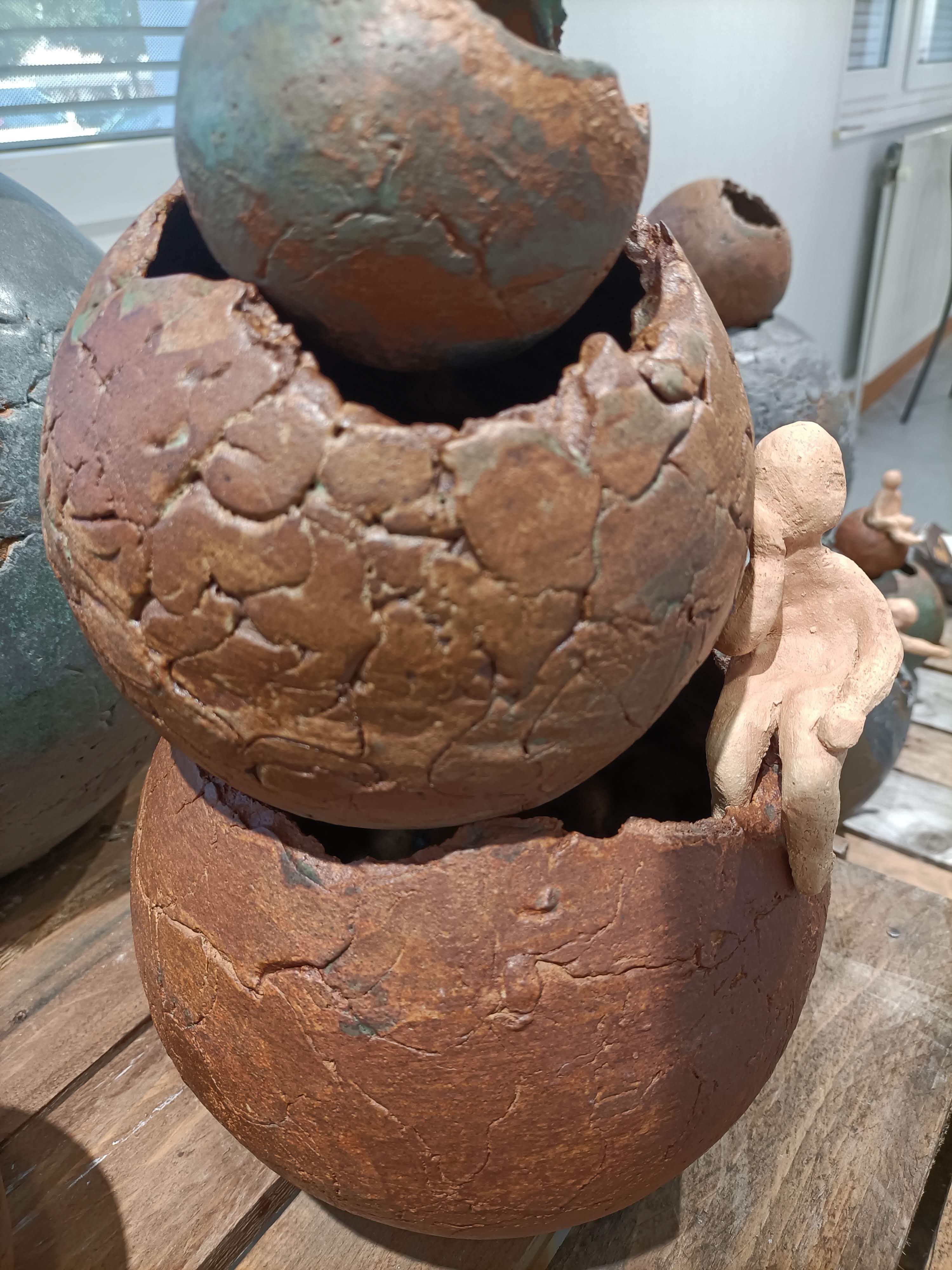 De la terre cuite au four à gaz, des effets de matières spectaculaires, des couleurs variées, des sculptures aux formes si particulières que les oiseaux en ont choisi certaines pour nicher au printemps...