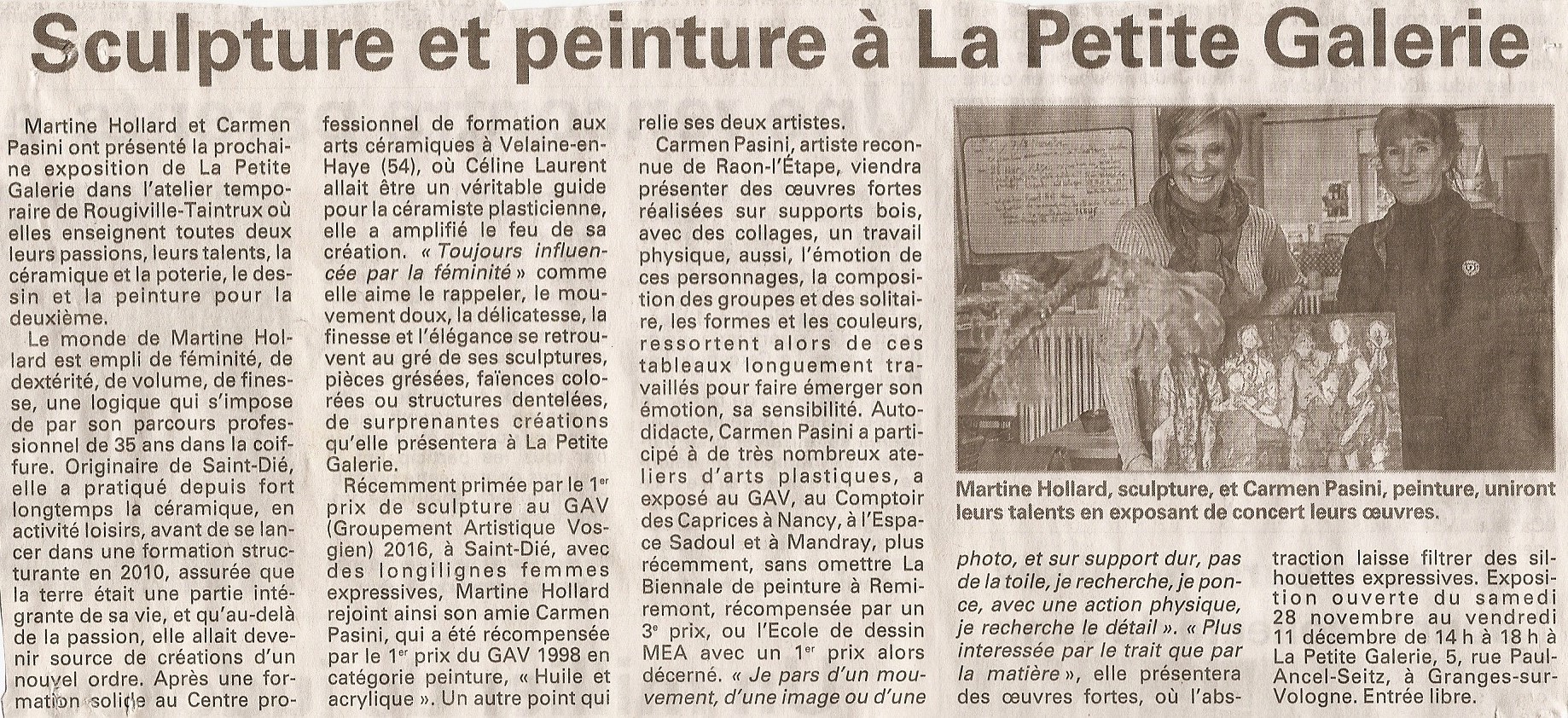Quatre cents œuvres exposées et 125 artistes participants, la 83e édition du salon organisée par le Groupe artistique vosgien (GAV) est une vitrine de toutes les formes d’art (Article de Vosges Matin du 3 mai 2016)